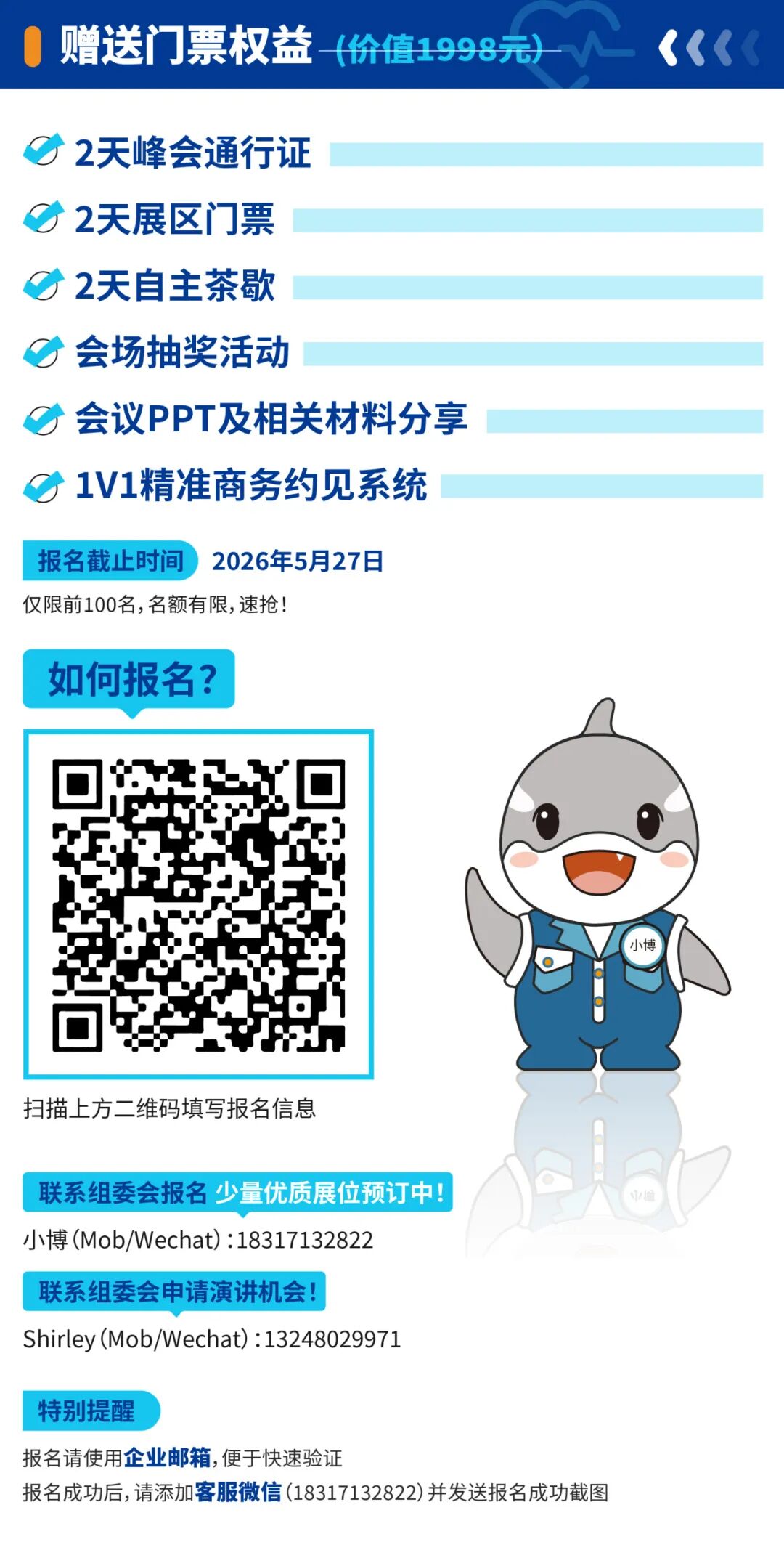 2. 仅限100席,需提前线上报名经由组委会审核,审核通过后发送电子门票。