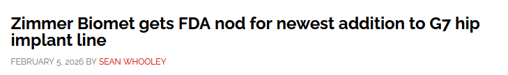 其中,捷迈邦美的G7髋臼系统近日成功斩获FDA 510(k)许可,为临床髋关节置换(尤其是翻修手术)的核心难题提供了创新解决方案;春立医疗的同类钽金属产品也实现关键突破,彰显了国产骨科器械的崛起实力。