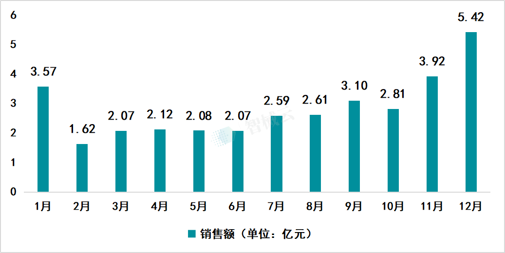 2025 年血透设备市场全年销售额呈现“前低后高、年末翘尾”的波动上行态势。年初 1 月为阶段性高点,3 月触底回升,下半年增长持续提速,11 月、12 月单月销售额分别攀升至3.92 亿元、5.42 亿元,环比增长显著,体现医疗机构年底采购执行与需求集中释放的特点。
