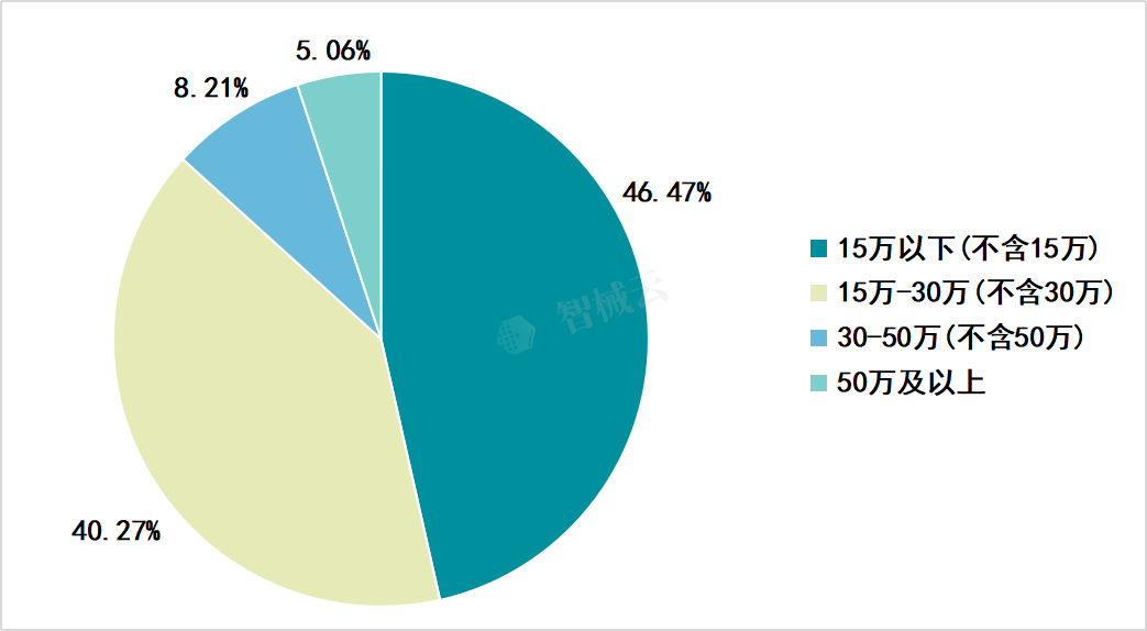 2025年血透设备市场呈现显著的“金字塔型”价位分布。15万元以下与15-30万元两大价格带分别占据 46.47% 与 40.27% 的份额,累计覆盖超 86% 的市场需求,构成了稳固的市场基本盘。对比之下,30 万以上高端市场占比合计仅为 13.27%。整体来看,2025 年血透市场以中低端性价比产品为主,高端市场占比有限但存在局部结构性机会,市场处于以“高性价比”为核心驱动力的规模扩张期。