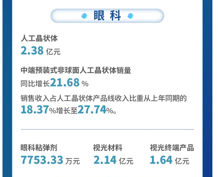 在具体的财务解析中,眼科模块表现突出,实现收入7.25亿元,占公司总营收的29.47%,稳居四大业务板块第二位。