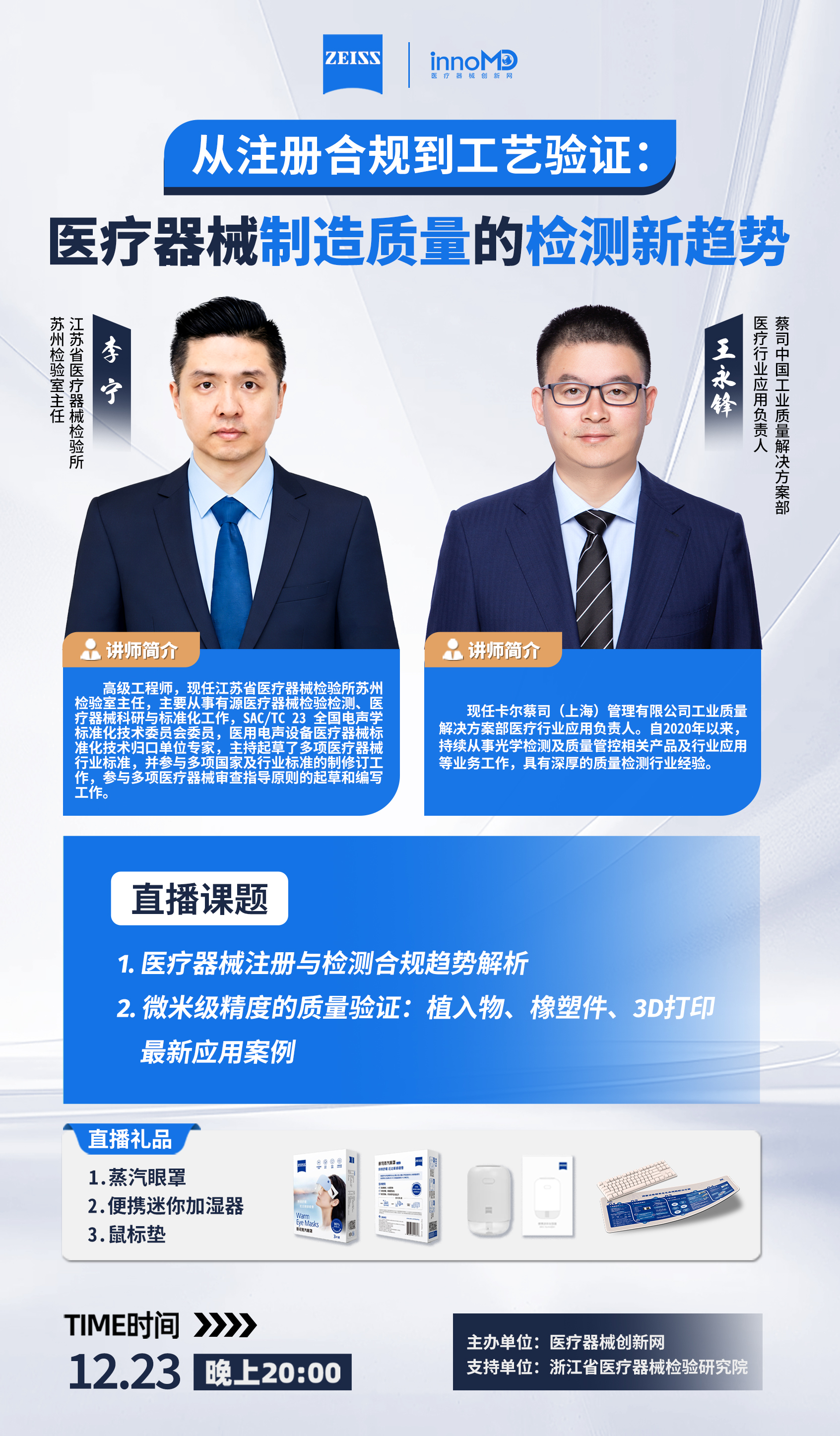 12 月 23 日晚 8 点,由医疗器械创新网主办,江苏省医疗器械检验所、浙江省医疗器械检验研究院支持的「从注册合规到工艺验证:医疗器械制造质量的检测新趋势」重磅直播来袭!行业权威专家联手破局,带你直击痛点、抢占技术先机!