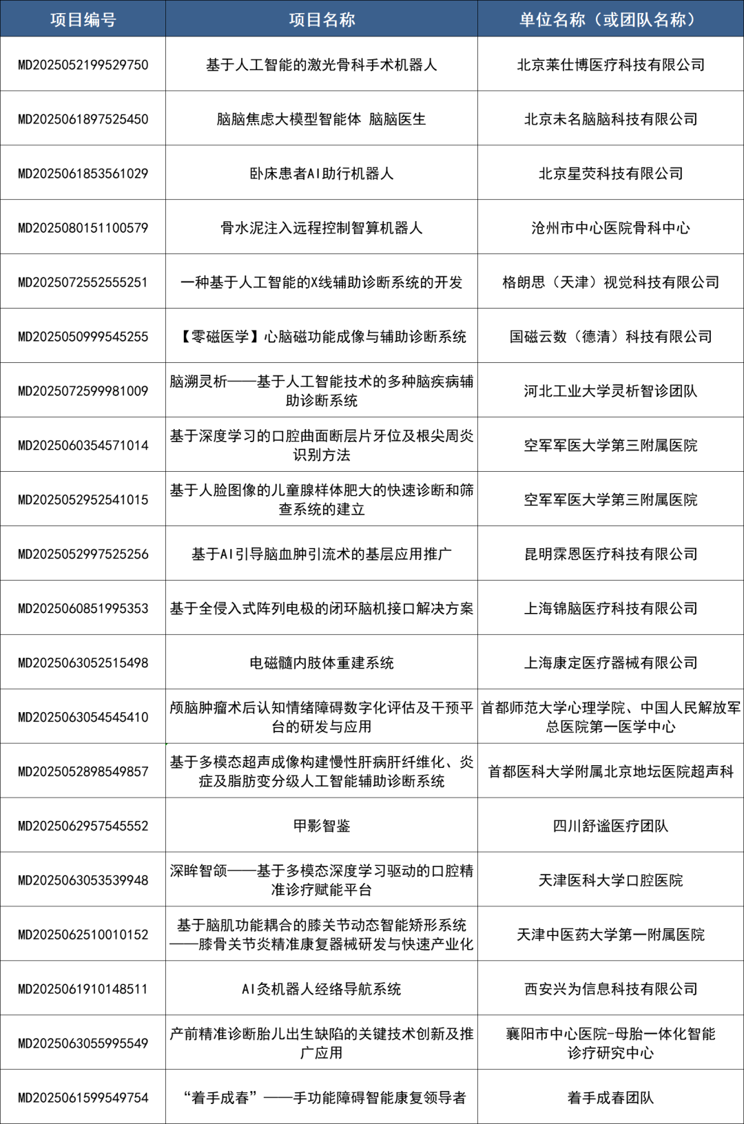 为助力北京市医疗器械产业中人工智能与医用机器人细分领域的创新生态建设,推动行业向智能化、高端化方向实现高质量发展,第八届(2025)中国医疗器械创新创业大赛人工智能与医用机器人类别赛将于2025年10月19日(周日)在北京昌平区举办。