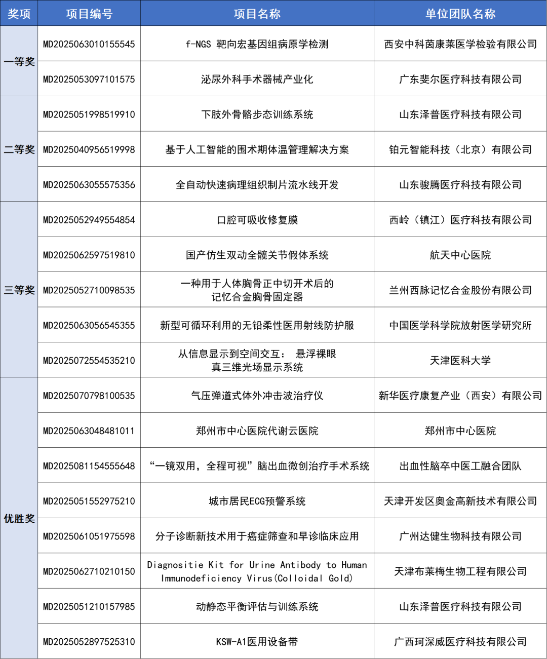 历经两天的激烈角逐,在天津东丽区进行的中国医疗器械创新创业大赛五场核心赛事的结果已全部揭晓,具体获奖名单如下。