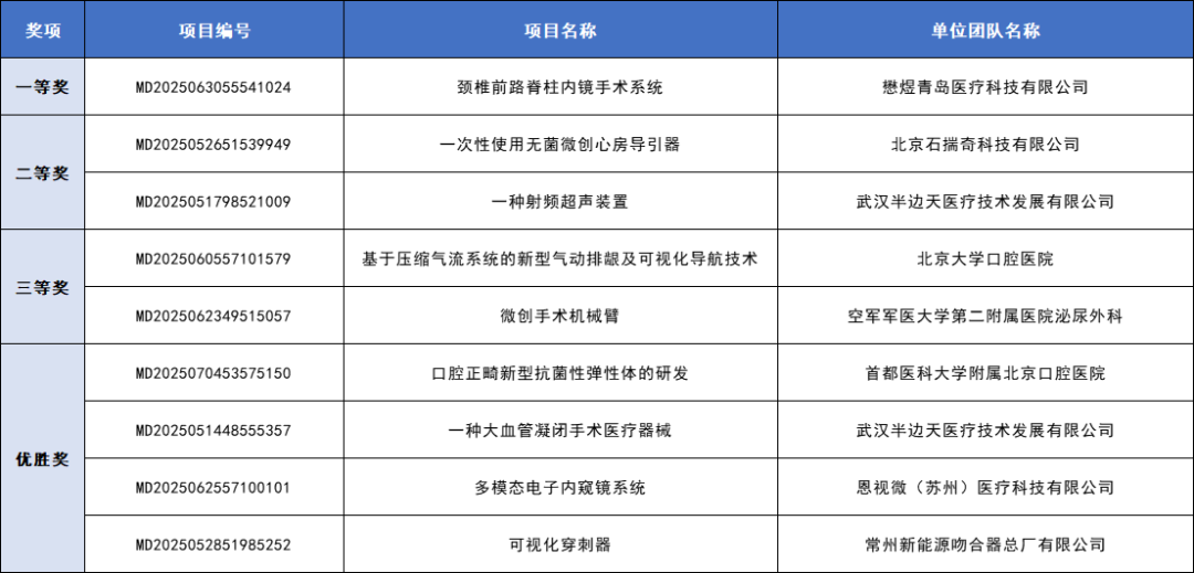 成绩揭晓!第八届(2025)中国医疗器械创新创业大赛外科微创器械类别赛
