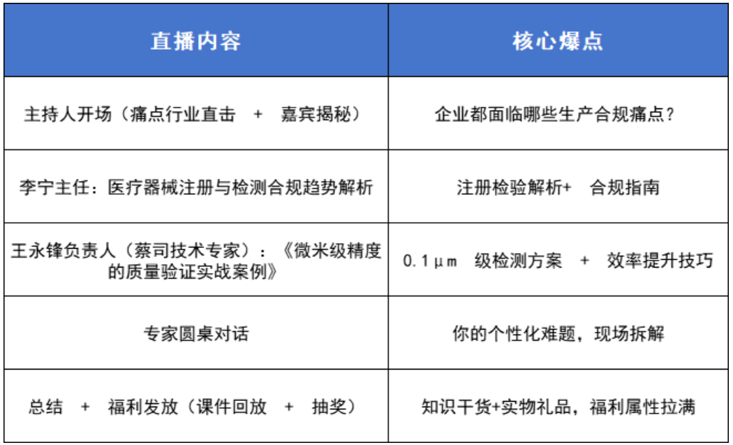 12 月 23 日晚 8 点,由医疗器械创新网主办,江苏省医疗器械检验所、浙江省医疗器械检验研究院支持的「从注册合规到工艺验证:医疗器械制造质量的检测新趋势」重磅直播来袭!行业权威专家联手破局,带你直击痛点、抢占技术先机!