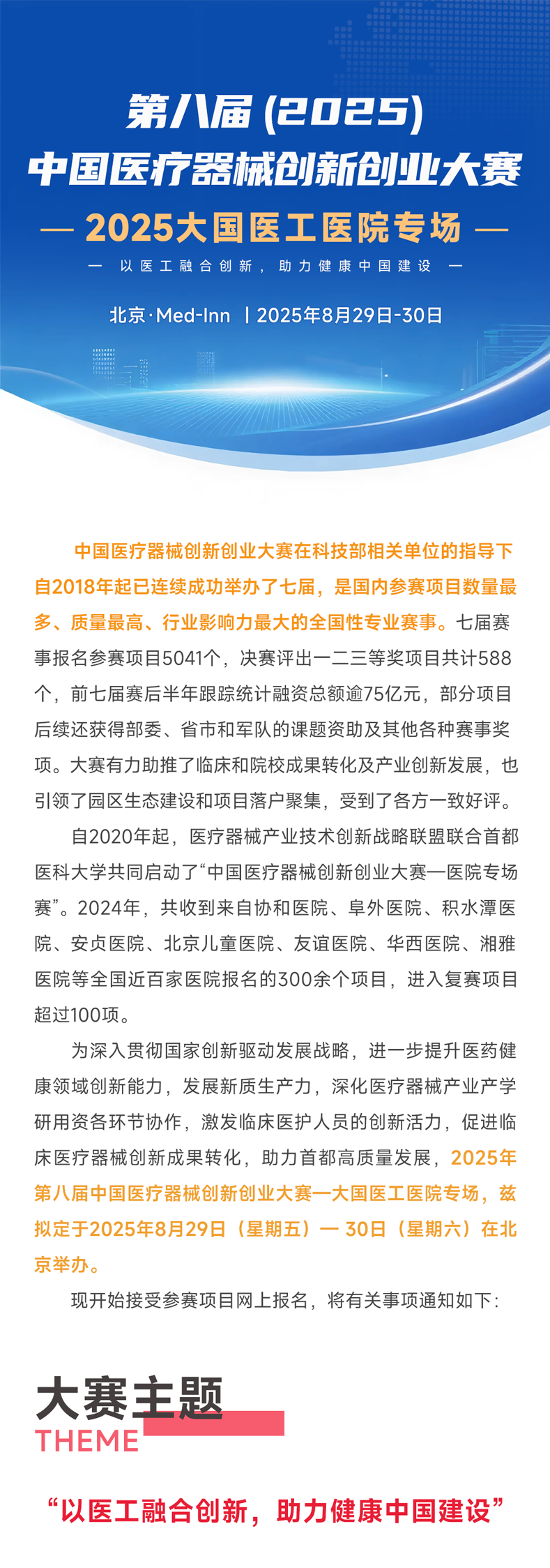第八届(2025)中国医疗器械创新创业大赛报名通知(第二轮)