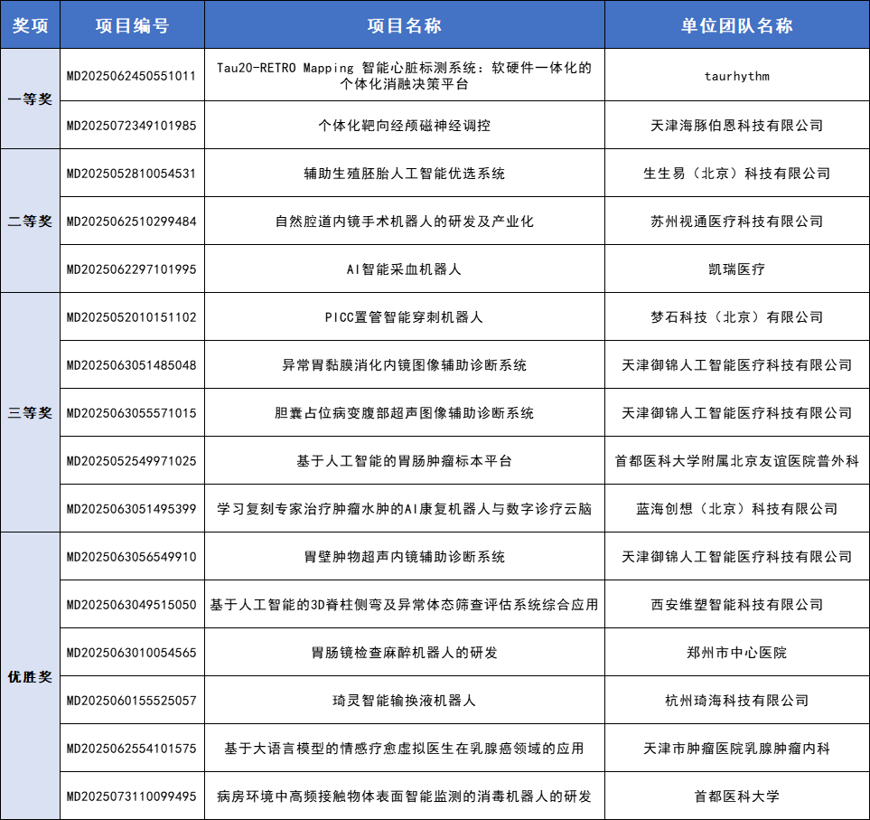 第八届(2025)中国医疗器械创新创业大赛——人工智能与医用机器人类别赛(初创组)