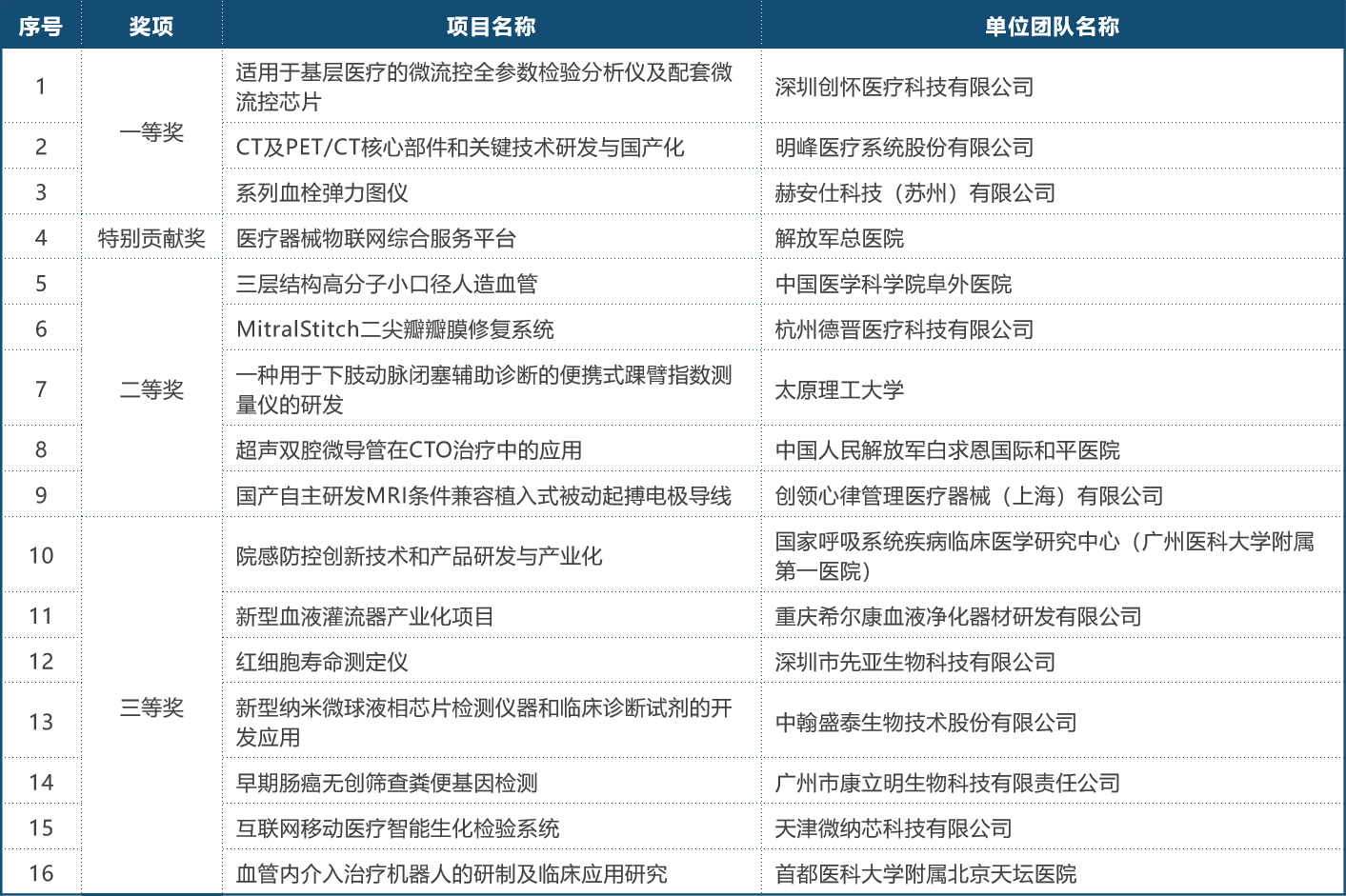 首届(2018)年中国医疗器械创新创业大赛决赛获奖名单